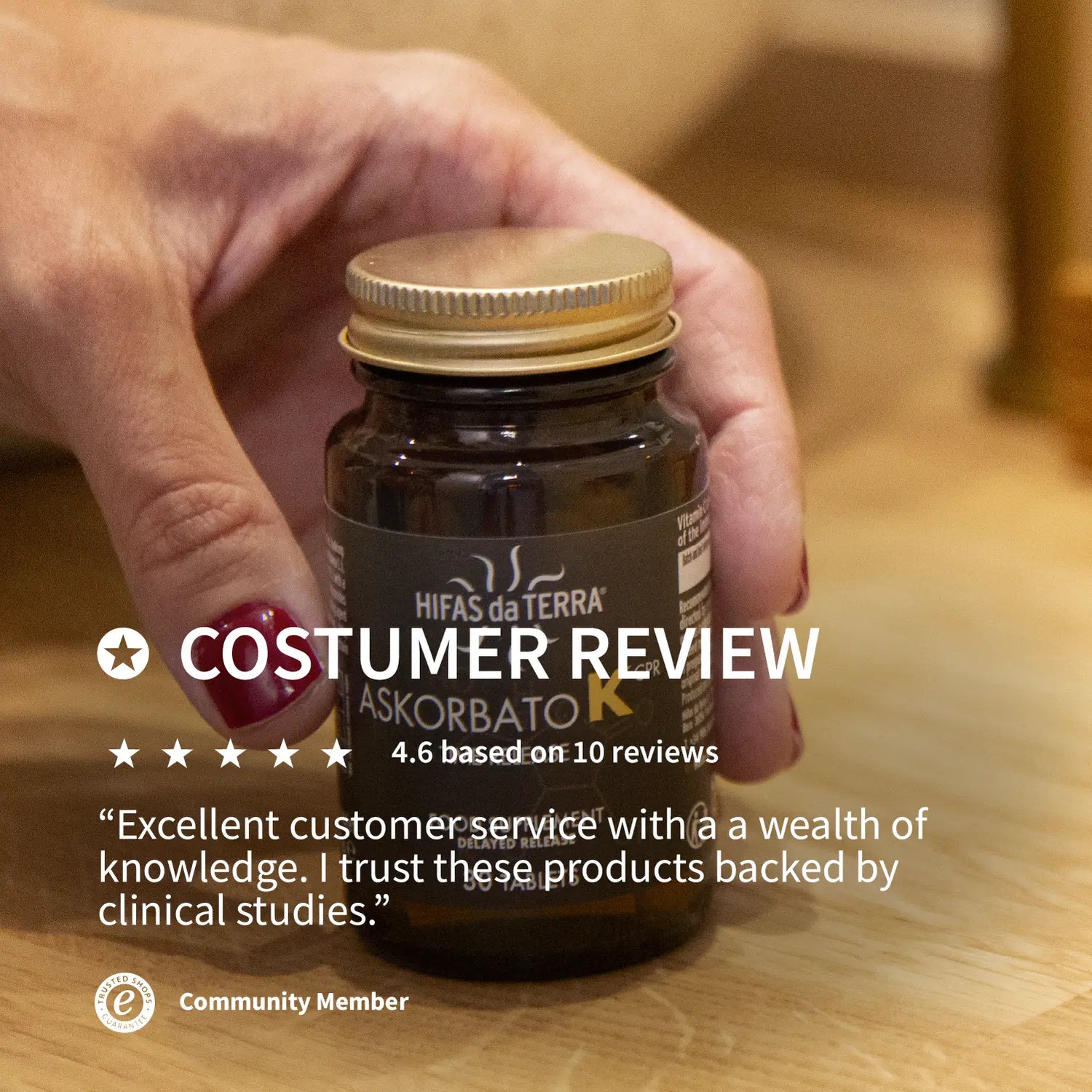 La vitamina C (acido ascorbico) è essenziale per il sistema immunitario e le difese. Askorbato K include anche polifenoli (un aiuto extra contro i radicali liberi) e bicarbonato di potassio (regolatore dell'acidità dello stomaco) per fornire micronutrienti essenziali al sistema immunitario per una protezione efficace contro virus e batteri senza danneggiare lo stomaco.